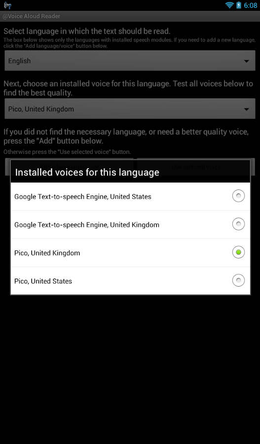 @voice aloud reader reads aloud the text displayed in android apps, e.g.